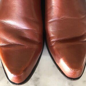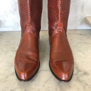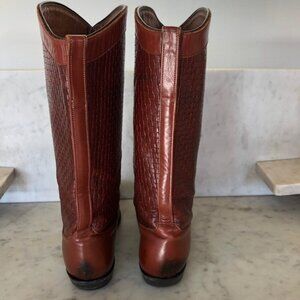 TONY LAMA Basket Weave Upper Leather Brown Pointed Toe Pull On Ladies Bo…