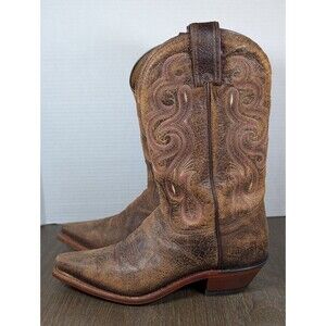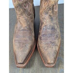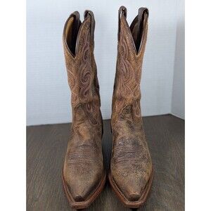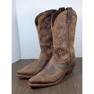 TONY LAMA Distressed Leather Western Boots Womens 6.5 B Brown Embroidered