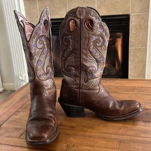 Tony Lama leather cowboy boots, in good condition decorative shaft, size 9.5 style # RR2016L, according to size chart in inches they are a size 11-11.5.