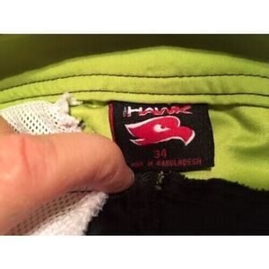 TONY HAWK SIZE 34 BOARD SHORTS. ONE ZIPPER POCKET IN BACK, 11.5" INSEAM, 20" LENGTH.
