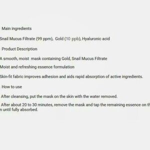 Contains more than 99 ppm, Contains 10 ppb of pure gold of snail mucus filtrate, which provides intense hydration, radiance and resilience to skin.