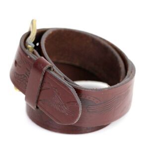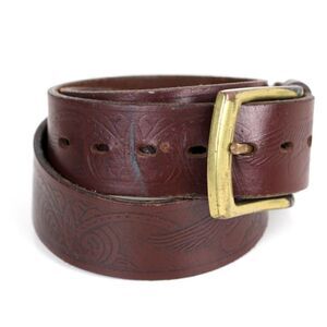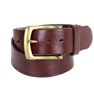 TOOLED BROWN GENUINE LEATHER 1 3/8"Wd CASUAL DRESS MEN'S BELT Sz 34 (A71