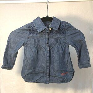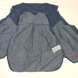 TOMMY HILFIGER brand. Soft denim button down shirt with embroidered flowers (2 different buttons) and front pleats. Pre-worn, like new. BUNDLE (2) or more Items from Sage's Closet & DEFINITELY SAVE 30%! A Shipping Discount may also apply! BUNDLE, BARTER, & DISCOVER YOUR SAVINGS!!! AAAALLLL OFFERS CONSIDERED!!