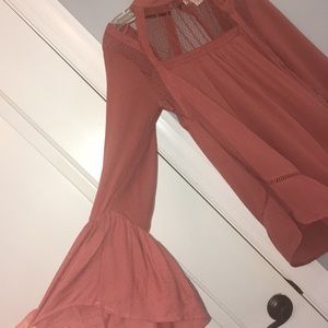NEVER WORN, NWOT🎉 I loved this top when I bought it, but it’s too big for me! It has beautiful lace on the front AND back. There is a cut out in the back too! Super light weight and flowy for a cute spring look🌸 Feel free to make me an offer💜💜💜💜