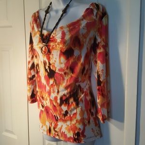 Very colorful with nice detail on back. Size Large. Measures 19 inches armpit to armpit. Length measures 24 inches. Perfect for all seasons.