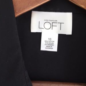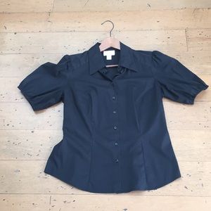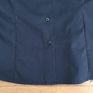 Black cotton and spandex button down shirt. Elastic at bottom of sleeve.