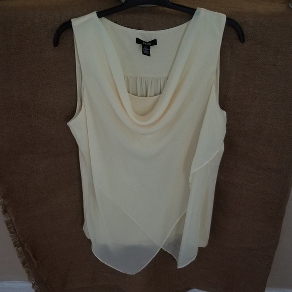 Light Beige Top with a softly draped cowlneck - Asymmetrical Overlay Top for a flattering silhouette