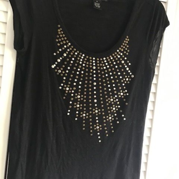 SLEEVELESS TOP BLACK WITH SILVER AND BRASS DECORATION DOWN THE FRONT