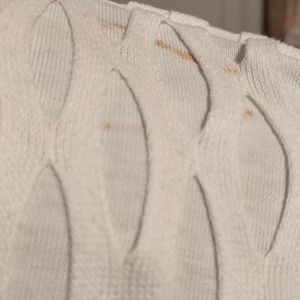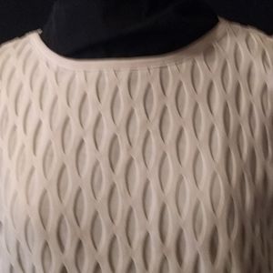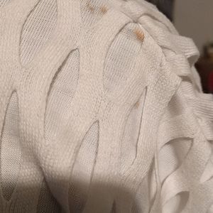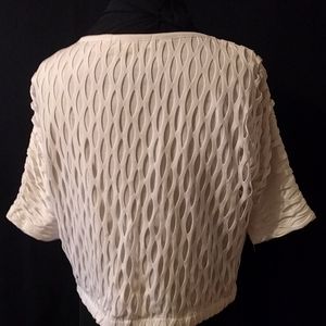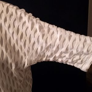 White pullover top with dolman sleeves.
