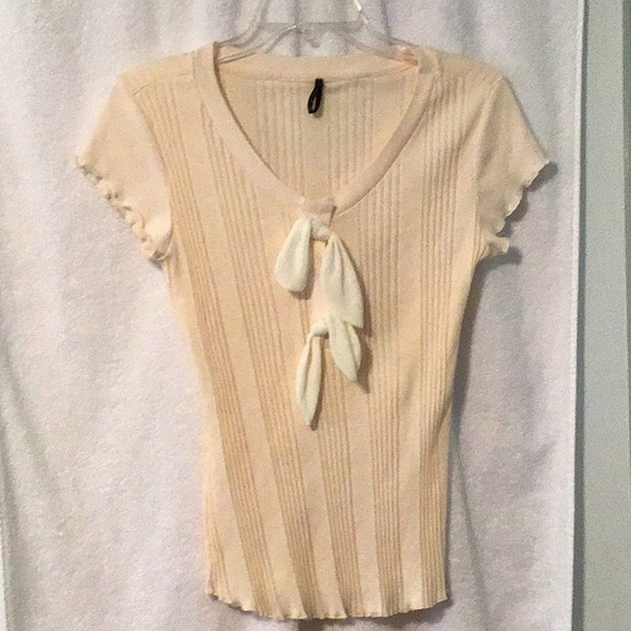 Cute bone cap sleeve top with 2 cream ties