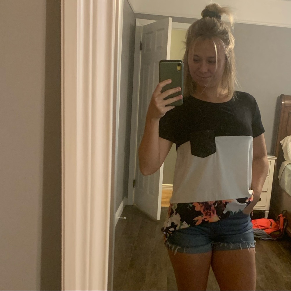 Pretty dress top From a local boutique Floral block color Sparkly pocket