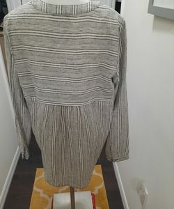 Beautiful Top 52% Linen 48% Rayon New Arrival Pin Strip Tunic Top Button Top Front Tag say Wht & BLUE IT LOOK BLUE/Grey