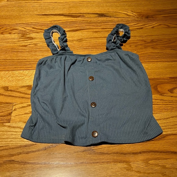 BLUE TANK ! RUFFLE SLEEVE !