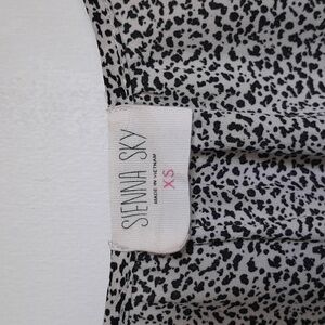 Dressy top, black and white print, tie at waist, good used condition, size x small. If you have questions, I'm happy to help. Thanks for visiting SHEUSEDME