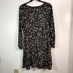 ANN TAYLOR Sz 4 Black Floral Crewneck Long Sleeve Knee Length Dress with zipper back closure