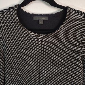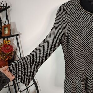 ANN TAYLOR Black & White Crewneck Heavyweight Long Bell Sleeve Sweater Blouse
