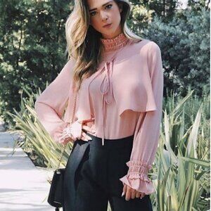 THIS CLASSY BLOUSE FEATURES LONG SLEEVES, FLOWY FIT AND ELASTICIZED AT NECK AND SLEEVE ENDS.