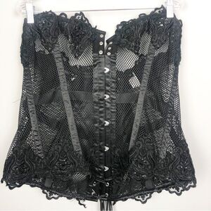TOP DRAWER | DAISY CORSETS Beaded Lace/Mesh Lace Up Black Corset Women’s Size 3X