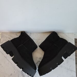 TOP MODA, Brigham 1 Black Vegan Suede Fur Platform Bootie Boots, Size 6.5