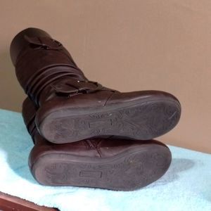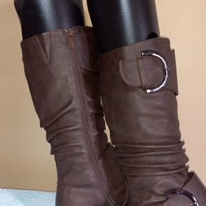 TOP MODA slouch zip boots with large buckle straps, boots, sz 5.5