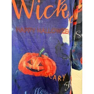 TOP Medium 8-10 Way To Celebrate Halloween blue with pumpkins wicked\3/4 long sleeves trick or treat