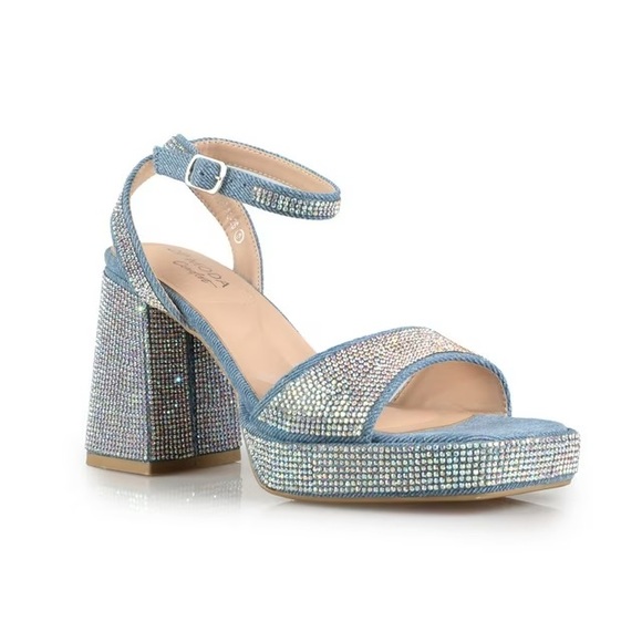 TOP Moda Blue Rhinestone Platform Heels