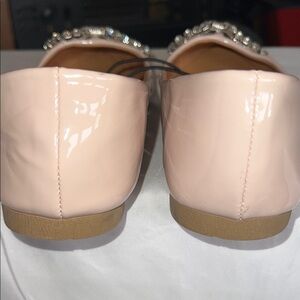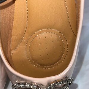 Elegant nude flats with sparkling rhinestone bow. Perfect for stylish outings.
