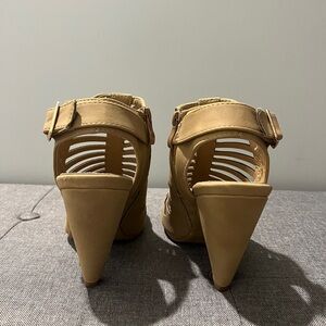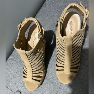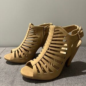 Step out in style with these TOP Moda tan heels, featuring a chic cage design and a comfortable chunky heel.