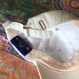 In excellent used condition. White with pink. “S” emblem on the front. Adjustable back buckle.