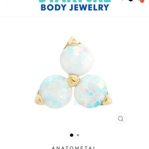 The Anatometal 3mm "Trio" end is made with 18kt yellow gold and features (3), 3mm White Opals. Value $382.