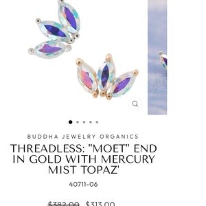 The Buddha Jewelry Organics "Moet" end is made with 14kt yellow gold and features (4) 3mm x2mm Mercury Mist Topaz gems. Value $330.