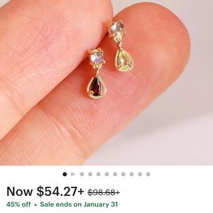 The LeiTjewlery (Etsy) piece is a fun, 2-part, dangly moonstone and peridot piece set on 14kt yellow gold. Value $60.