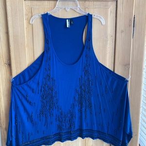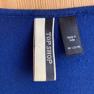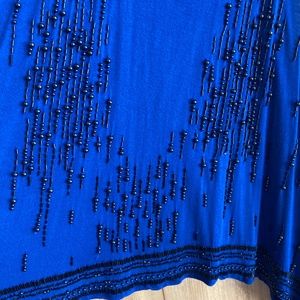 TOP SHOP Blue Hand-Beaded Jersey Tunic, Size 4, but can be worn as a One-Size Fits All. It’s very low-cut, oversized and flowy, with dropped armholes. Soft viscose jersey, hand beaded. EUC $25