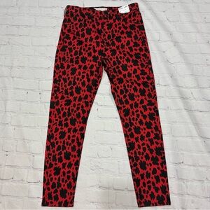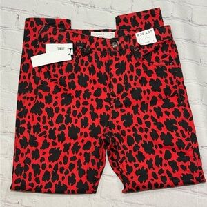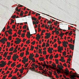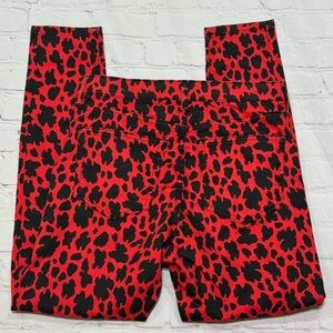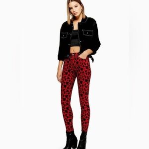 TOP SHOP JAMIE women’s high rise skinny jeans Red Black leopard prints 8 NWT