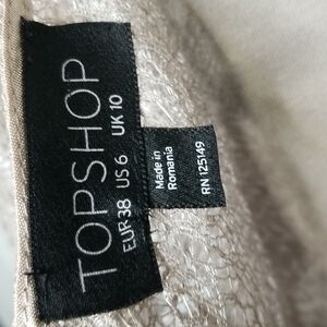 TOPSHOP SHEER ZIPPER BACK TOP IN TAUPE ,IN GOOD PRE OWNED CONDITION, SIZE 6