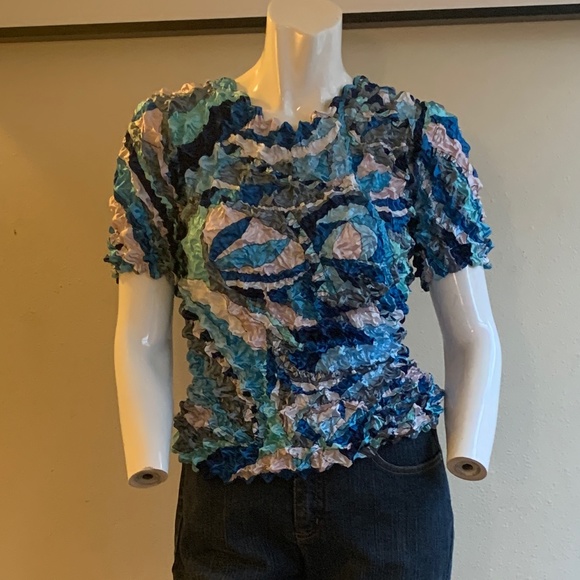 TOP SPANDEX 85% Polyester 15%spandex hand made print color color short sleeve. this make remembered the 90S