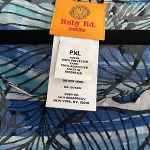 ππLike NEW TOP by Ruby Road in size Petite X Large. Vibrant blue and turquoise and black. Has a white short-sleeve tank top underneath.
