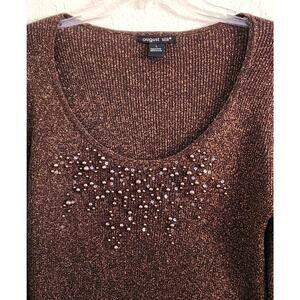 TOP/BLOUSE-AUGUST SILK-Brown-Gold Shimmer Thread-Low Cut-Beading-Silk Blend-M/L