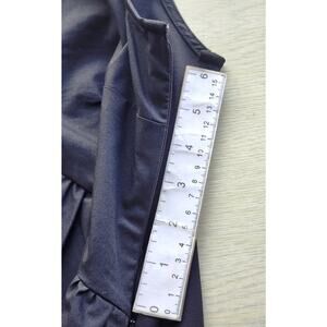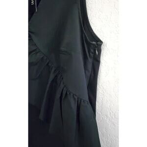 Nice solid black top by INC-International Concepts. This is a sleeveless top. The front has a V-neck with a diagonal ruffle running across the front. There is a 6" side zipper, that doesn't open at the bottom, for easier on and off. It is a cotton/polyester/spandex blend. This a NEW top with the original tags. It is SIZE LARGE.