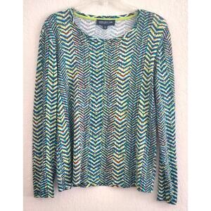 TOP/BLOUSE-JONES NEW YORK-Multi Color Chevron Pattern-Long Sleeve-Cotton-P-L