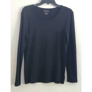 Nice basic style shirt by White Stag. This is a solid black 100% Cotton top. It is a pullover with long sleeves and a scoop style neckline. It is a nice casual top for any occasion. It is SIZE MED (8-10)