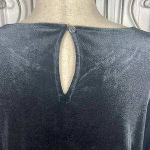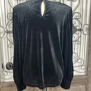 Modern glam has never been easier - or comfier, or more flattering - than this soft velour top with a pretty embellished bow. Round neck with keyhole. Long blouson sleeves with puff shoulders. Back button keyhole.
