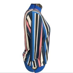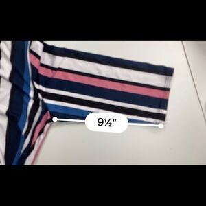 TOP FASHION OF NY,women’s top, Multicolored,Sz XL, 95% polyester, 5% spandex, machine wash. This cute top has slimming vertical lines and a tie at the bottom. The bottom has a cuffed hem. Plunging Neckline,and3/4 length sleeves. Please see approximate measurements in pictures before purchasing. Send me an offer. I will either accept or counter! Don’t forget to bundle and save.