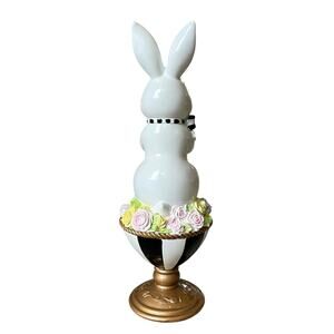 TOPHAT & TAIL Easter Bunny Rabbit On Flower Pedestal Egg 15" Mackenzie Style