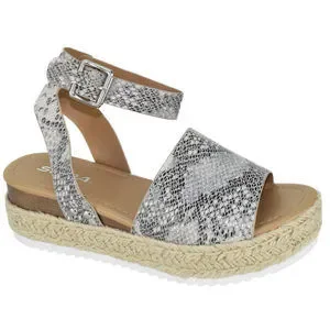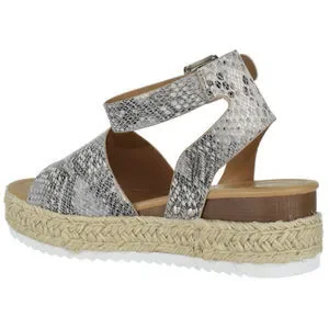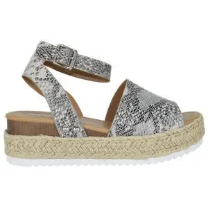 * Soda Women Wedge Sandals Open Toe Ankle Strap Flatform Espadrilles Trim Platform Beige Python TOPIC-S