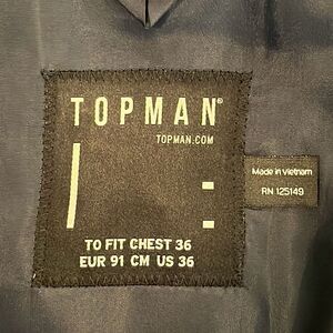 This blazer is made by Topman. It’s a navy blue 2 button blazer. Size 36 and in very nice pre owned condition. Smoke and pet free home.