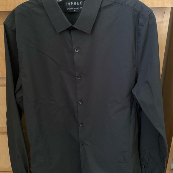 TOPMAN Button Down Stretch Skinny Fit M Black