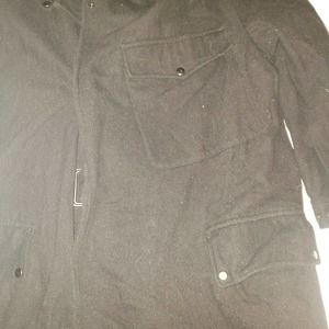 TOPMAN Design Limited Edition Long Trench Black TOPCOAT Size Large. Pre own long coat. No belt