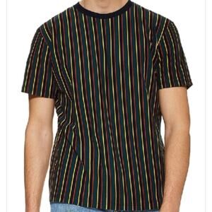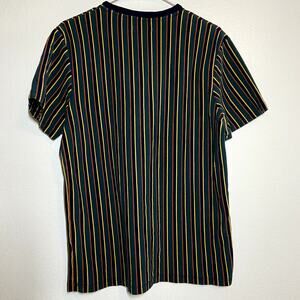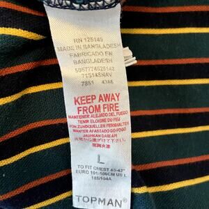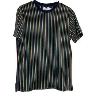 TOPMAN Frank T-shirt 90s Retro Crew Neck Striped Navy Blue Multi Large
