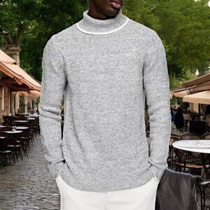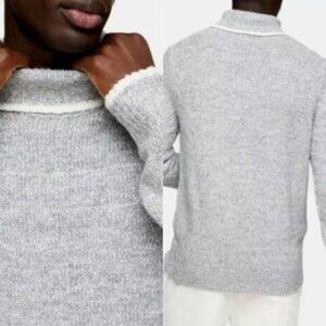 Topman Heather Gray Tipped Roll Neck Sweater Turtleneck Cozy Pullover Men's